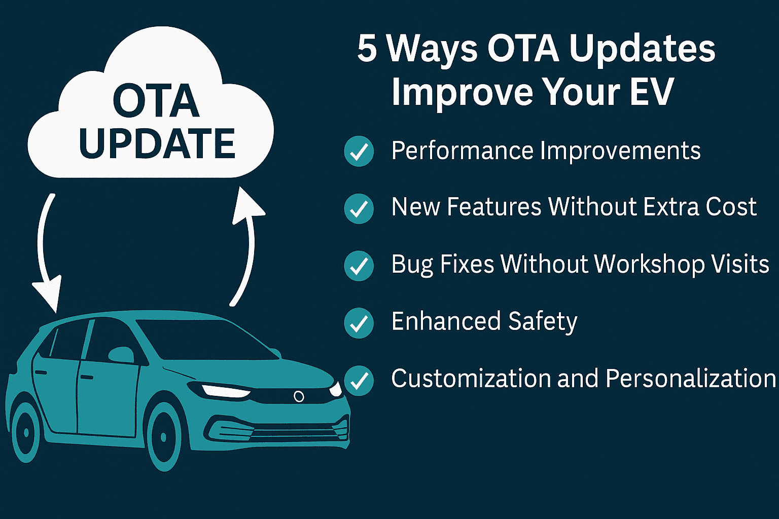 OTA (Over-the-Air) updates are software upgrades delivered wirelessly to your EV through its internet connectivity. Instead of plugging in at a workshop, your EV’s onboard computer downloads and installs the update automatically, often while you sleep.